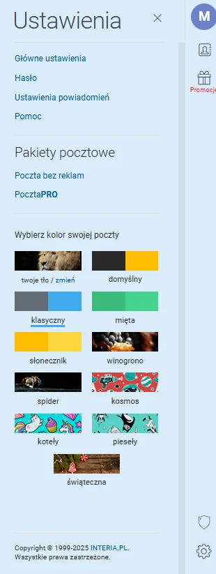 Aby dodać adres alternatywny do swojego konta pocztowego, zaloguj się na nie i kliknij ikonę zębatki w prawym dolnym rogu ekranu, następnie wybierz Hasło,