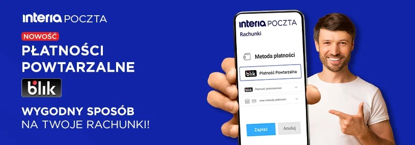 Płatności Powtarzalne BLIK to nowy sposób płatności za comiesięczne zobowiązania oferowany w usłudze Rachunki w Poczcie Interia. Wystarczy, że raz aktywujesz Płatności Powtarzane BLIK, a kolejne transakcje będą realizowane automatycznie.